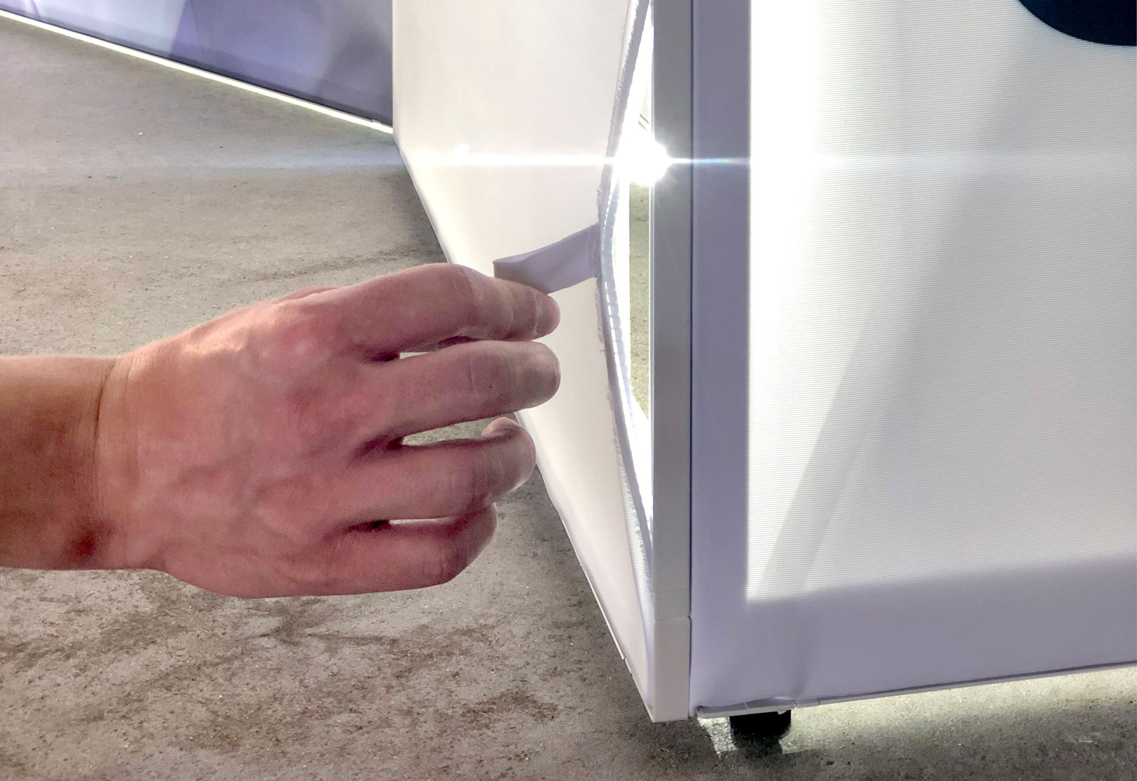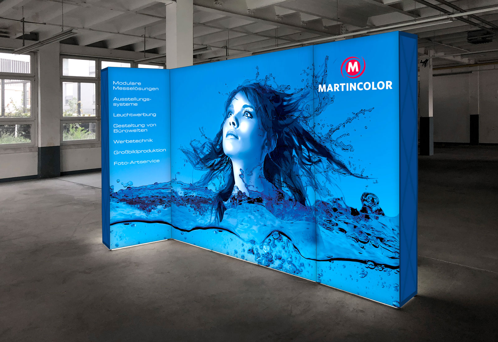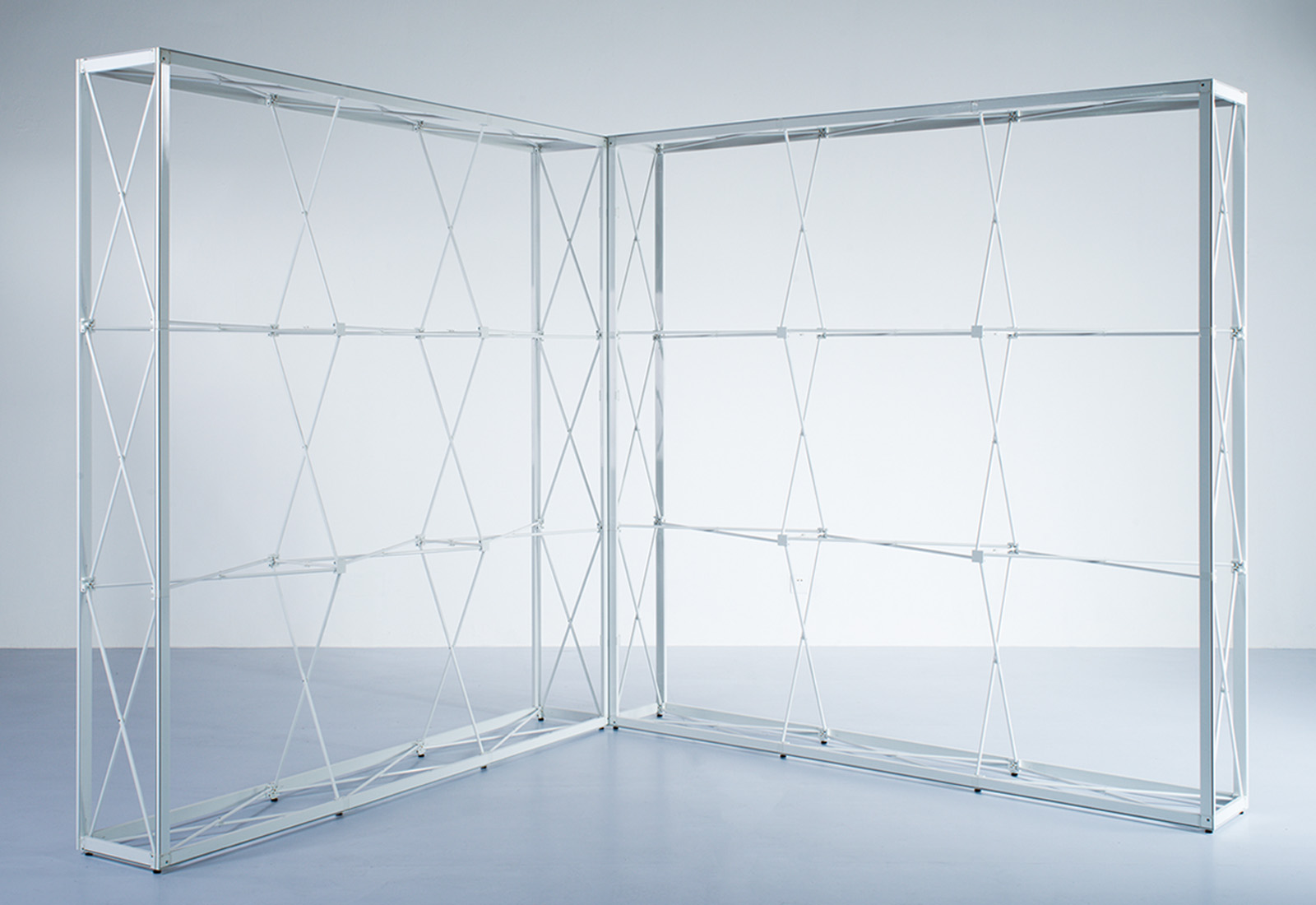 Eine Revolution im Messebau ist das Messesystem GRID! Bei dem Systemgerüst handelt es sich um ein Scherengitter- bzw. PopUp-System, das in verschiedenen Höhen und Breiten verfügbar ist. Durch stabile Adapter werden die einzelnen Wandsysteme miteinander zu einem Stand verbunden. Das geht leicht und kann von jeder, auch ungeübten Person, ausgeführt werden. Alle Systeme verfügen umlaufend um eine Systemnut in die mittels eines Gummikeders eine textile Bespannung knitterfrei eingebracht wird. Der Aufbau geht so schnell, dass innerhalb von wenigen Minuten z.B. eine Bildwand von 5 m² aufgebaut ist. Der Druck der individualisierten Grafik erfolgt über hochauflösendes Textil-Sublimationsverfahren. Das GRID Systemgerüst lässt sich klein zusammenfalten und leicht transportieren. Damit ist GRID eine kinderleicht aufzubauende Messelösung - auch für komplexe Messeumsetzungen. Ganz neu ist die faltbare GRID Lightbox, mit dem auf dem Messestand zusätzliche Akzente gesetzt werden können.
