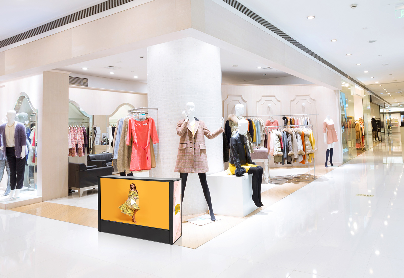 Der schwarze digitale Counter FUTURE ist ein Eyecatcher auf Ihrem Messestand und transportiert Ihre Werbebotschaft multimedial und äußerst wirkungsvoll zu Ihren Kunden. Dies wird durch das hochauflösende Video sichergestellt, das über den integrierten 32" oder 55" Samsung-Bildschirm abgespielt wird. Die Seitenteile des Counters sind standardmäßig mit schwarzen Seitenbespannungen versehen. Auf Wusch können diese jedoch auch mit individuell gestalteten Textildrucken gefertigt werden, die Sie jederzeit erneuern und austauschen können. Der digitale Counter FUTURE ist sowohl im Hoch- als auch im Querformat erhältlich und bietet somit Flexibilität in der Präsentation. Er ist in zwei Größen verfügbar: Die horizontale Version ist mit einem 55"-Bildschirm ausgestattet, während die vertikale Version einen 32"-Bildschirm besitzt. Bei der vertikalen Variante ragt die Tischplatte über alle Seiten hinaus. Beide Versionen des Counters sind in einer benutzerfreundlichen Bauhöhe von 93 cm gestaltet und lassen sich dank werkzeugloser Montage schnell aufbauen. Ein integrierter Ablageboden an der Rückseite der Theke bietet Platz für eine ordentliche Aufbewahrung Ihrer Prospekte und Informationsmaterialien. Der digitale Counter FUTURE ist innerhalb kürzester Zeit einsatzbereit und wird auf jeder Messe zu einem unübersehbaren Blickfang.