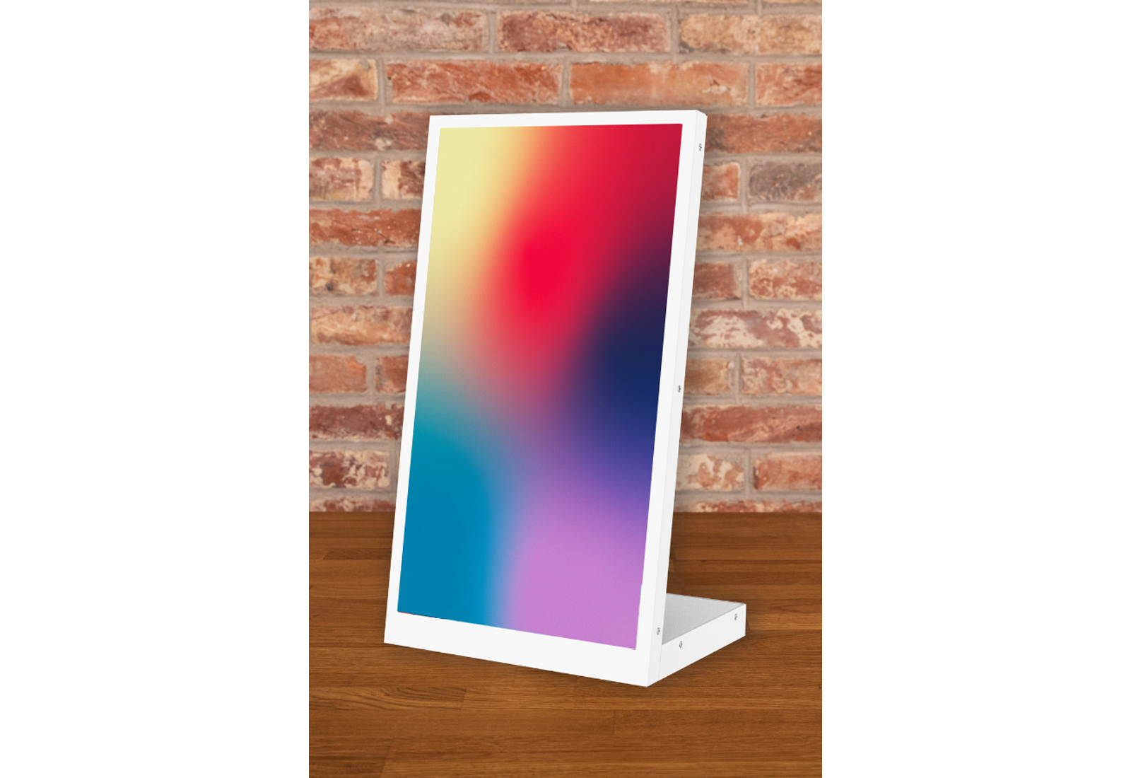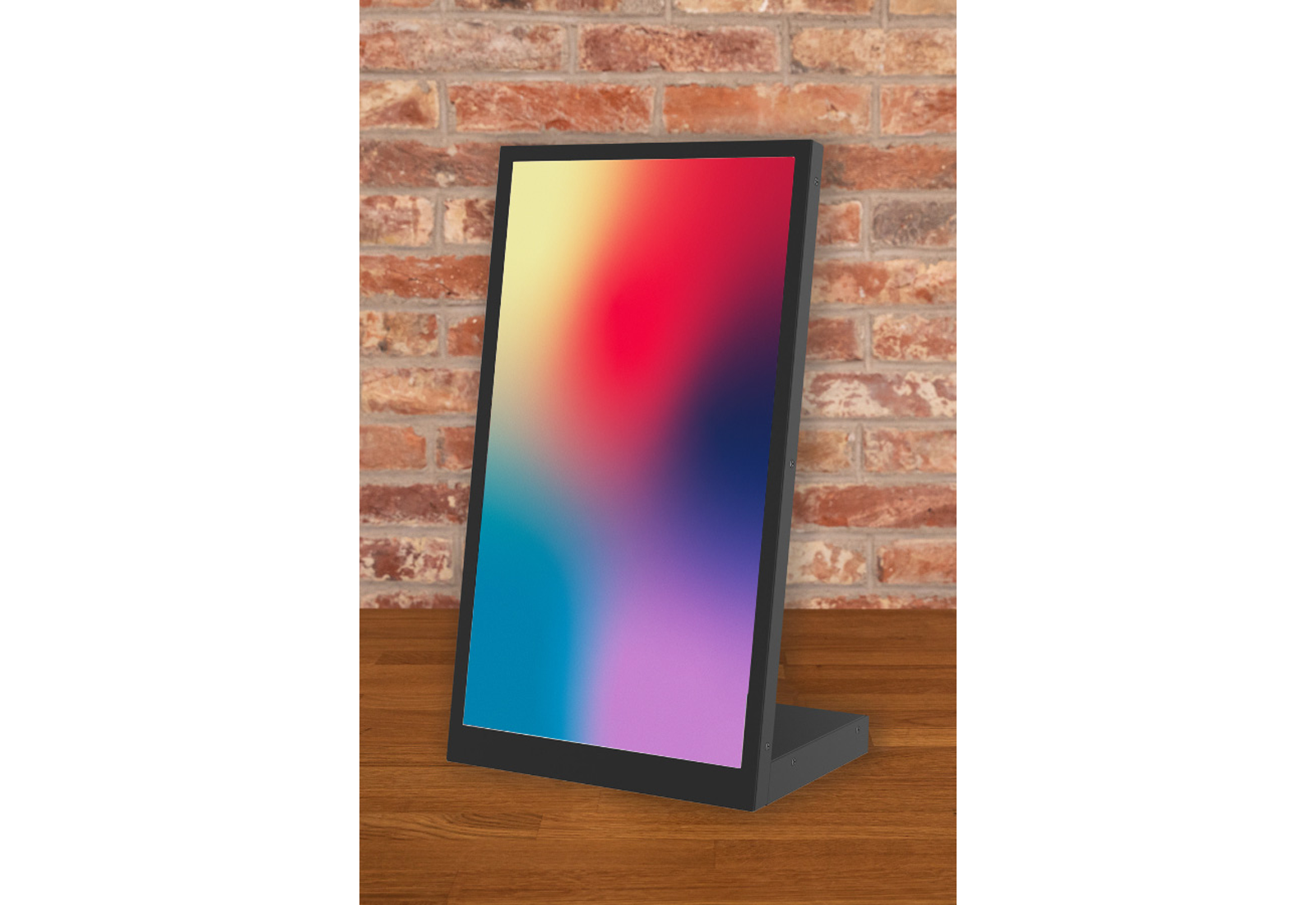 Unser digitales Thekendisplay SECURE ist in den Farben weiß und schwarz lieferbar und hat ein Gewicht von 2,1 kg. Ab einer größeren Auflage sind auch Sonderlackierungen möglich. Der WLAN fähige Full HD LCD Bildschirm hat eine Größe von 15,6 Zoll und ist in der normalen Ausführung mit einem USB-Anschluss versehen. Auf Wunsch kann das Tischdisplay auch mit einem Akku ausgestattet werden. Wir liefern das System fertig montiert, sodass es sekundenschnell einsatzfertig aufgestellt werden kann.