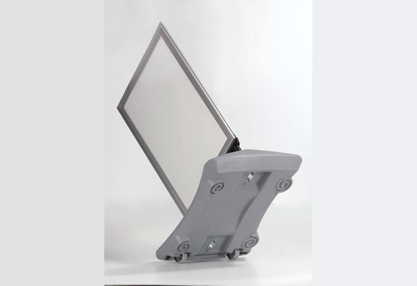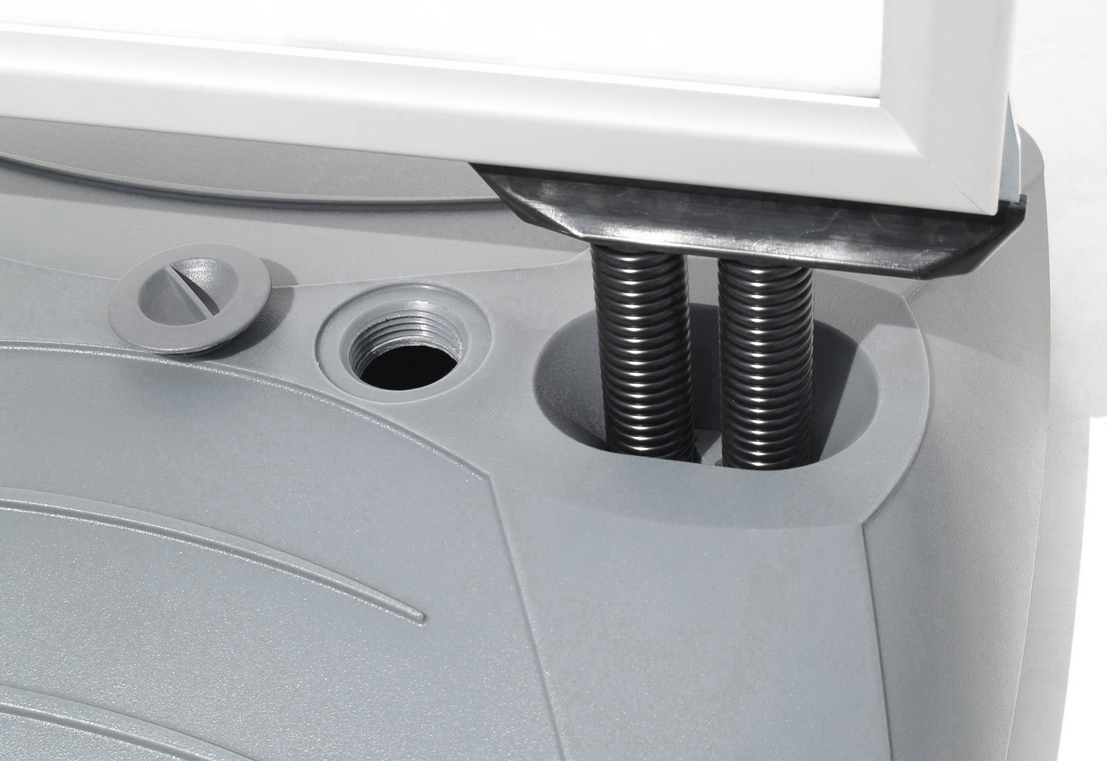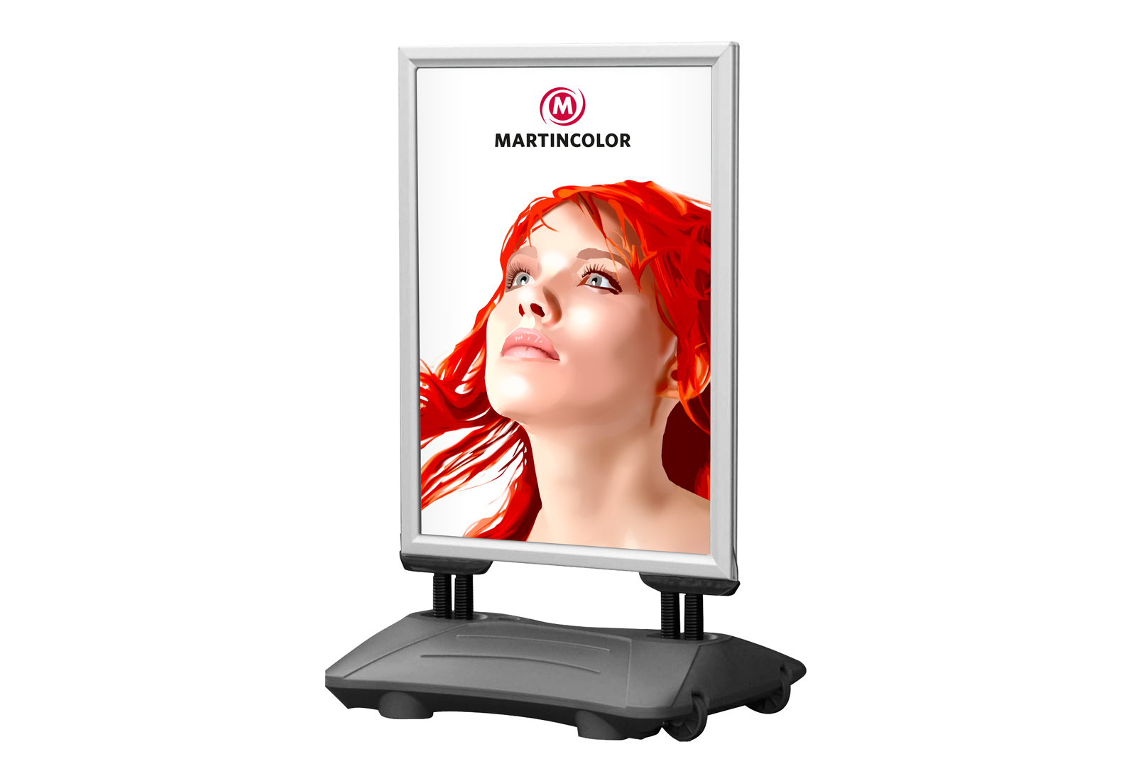 Kundenstopper sind aktive Verkaufshelfer, die niemand übersieht. Der hier vorgestellte, doppelseitige Kundenstopper Water ist in unterschiedlichen Formaten lieferbar - für Plakate in den Formaten DIN A1 und DIN A0. Der Kundenstopper ist wetterbeständig durch umlaufende Dichtungen und hält selbst stärkerem Wind stand. Das Model „Water“ verfügt über einen, je nach Klapprahmengröße, befüllbaren Wassertank von 30 bzw. 36 Liter. An der Unterseite des Aluminium-Klapprahmens befinden sich 4 bewegliche Federn, die ein Umkippen des Kundenstoppers verhindern.