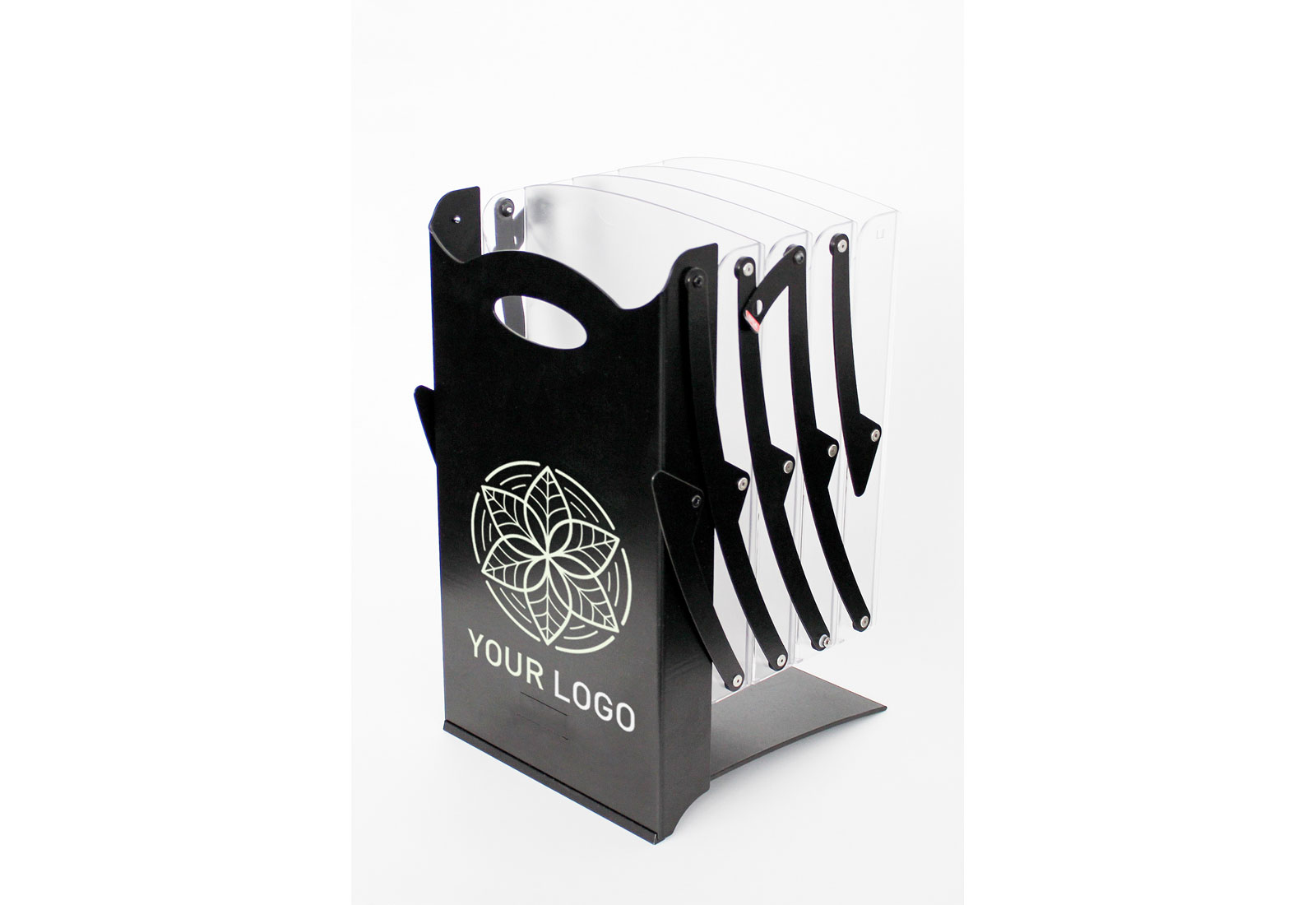 Die Real ZIP-Serie Black wurde für Kunden entwickelt, die einen Prospektständer in Top-Qualität, aber zum einem günstigen Preis benötigen. Wie der klassische Real ZIP auch, kann der Real Zip Black auf ein kleines Maß zusammen gefaltet und so in einer praktischen Transporttasche transportiert werden. Die komplett aus lackiertem Metall gefertigte Bodenplatte gibt dem Prospektständer die nötige Stabilität. Durch den im System integrierten Tragegriff kann der Prospektständer zudem leicht gehandelt werden. Die lackierte Frontfläche lässt sich auf Wunsch mit einem individuellen Logoaufdruck versehen.