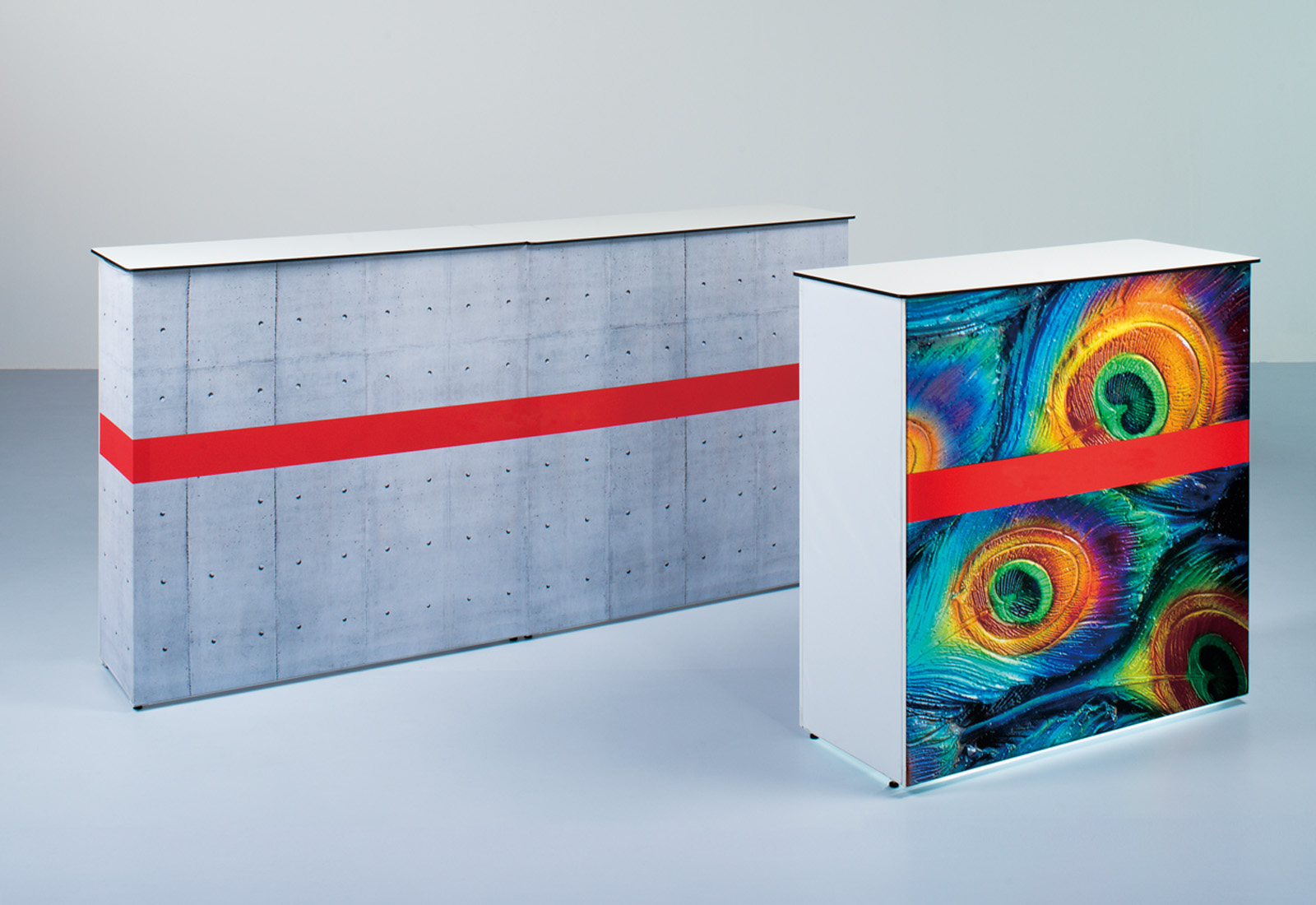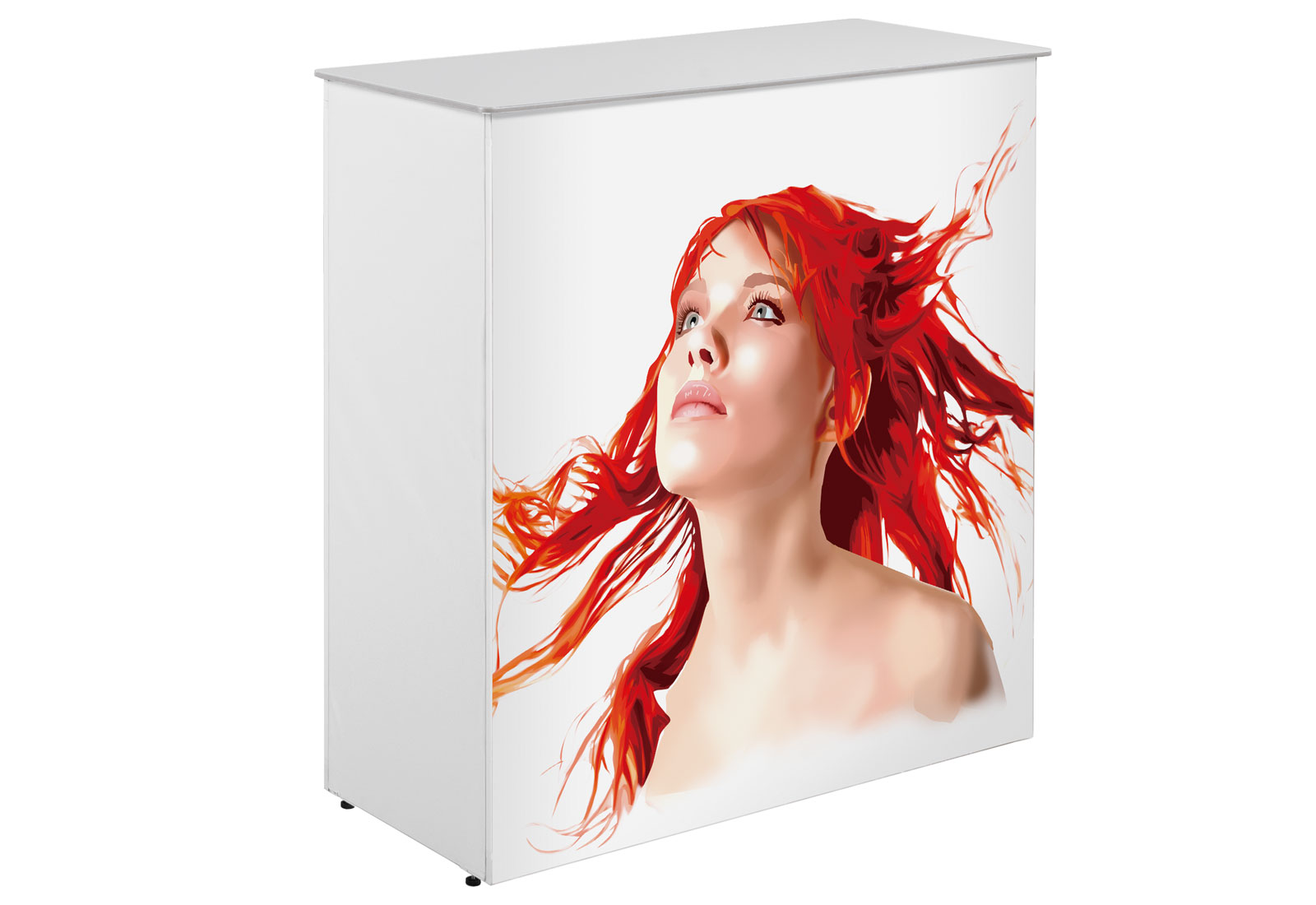 Der GRID Counter ist die perfekte Ergänzung zu den textilen Faltdispays und Messeständen der GRID Familie. Der GRID Counter ist mittels eines Scherengitter-Mechanismusses sekundenschnell aufgebaut. Dann werden Profilschienen am Rahmen befestigt. In die umlaufende Nut der Profilschienen wird die Grafikbespannung mit einem Gummikeder eingesteckt. So entsteht innerhalb weniger Minuten eine individuelle Werbefläche. Durch die einfache Befestigung der Textilbespannung, kann diese schnell aus- und umgewechselt werden. GRID verfügt über eine silberne oder wahlweise weiße Thekenplatte und rückseitig über einen Einlegeboden. Der Transport erfolgt in einem schwarzen Trolley. Die maximale Flächenlast für die Theke beträgt ca. 20 kg.