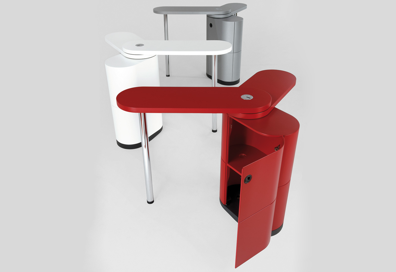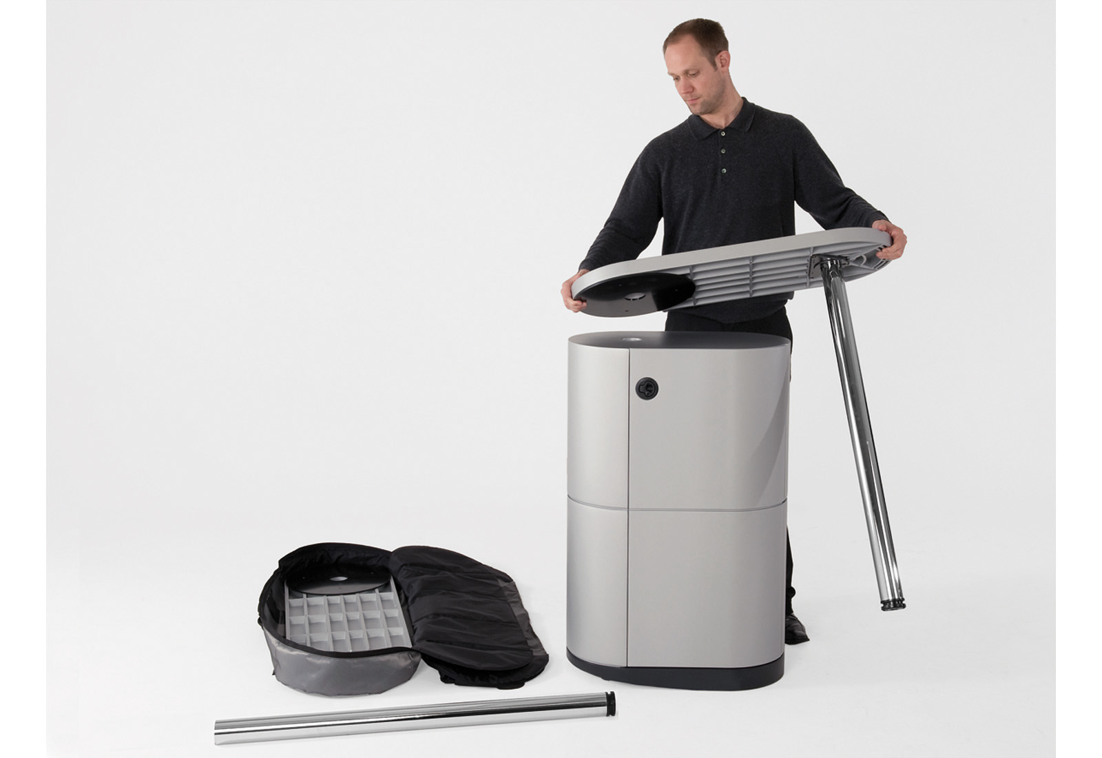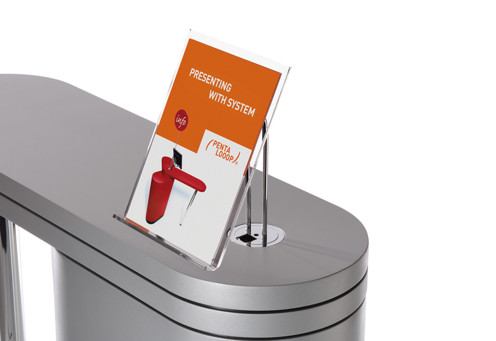 Mobil, flexibel, funktional und ein echter Hingucker – das ist PENTA-LOOOP®, das Multitalent unter den Messetresen. Dank beider separat drehbarer Tischplatten lässt er sich in unzähligen Konfigurationen aufbauen. Und zwar mit wenigen Handgriffen, ganz ohne Werkzeug.
