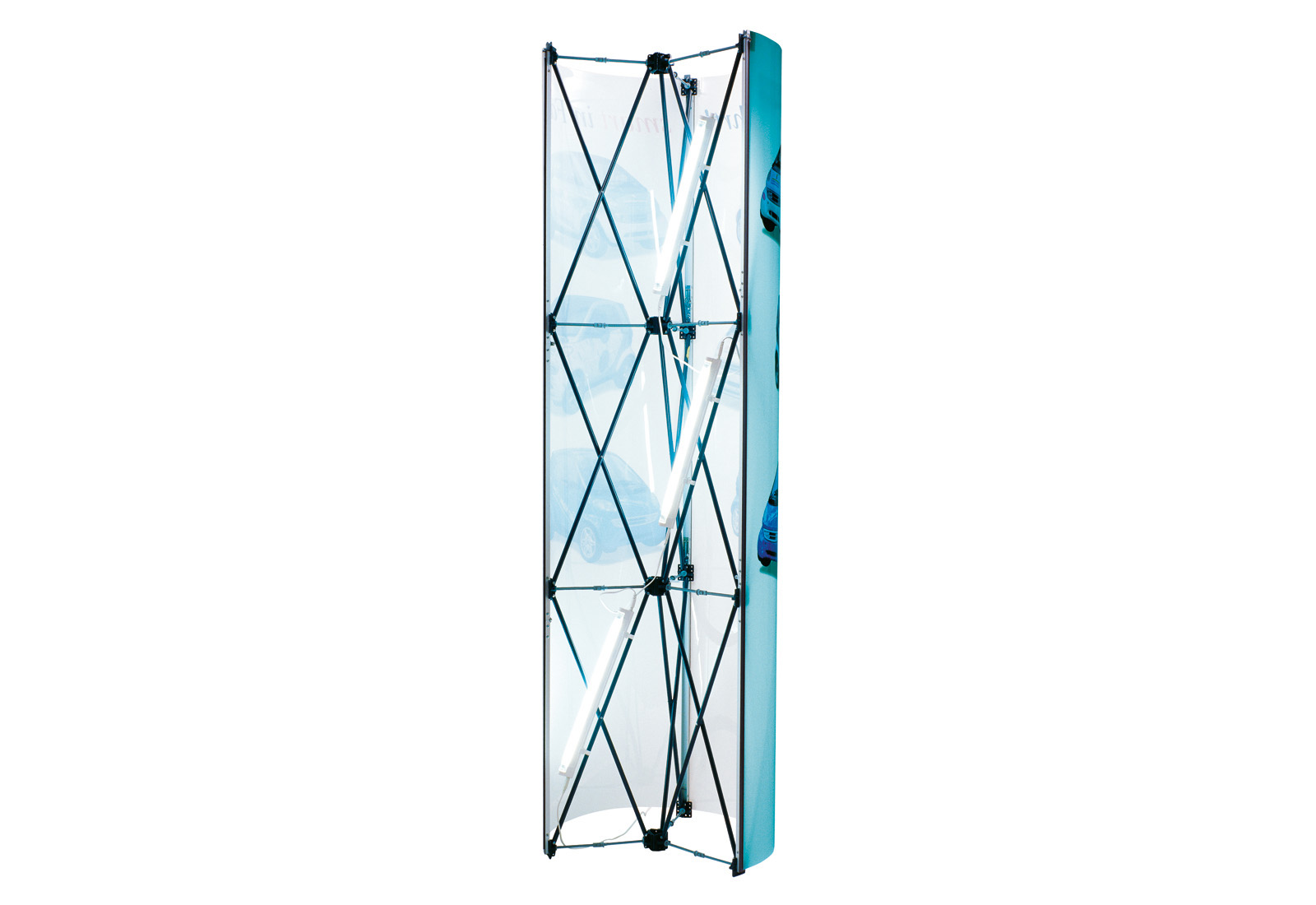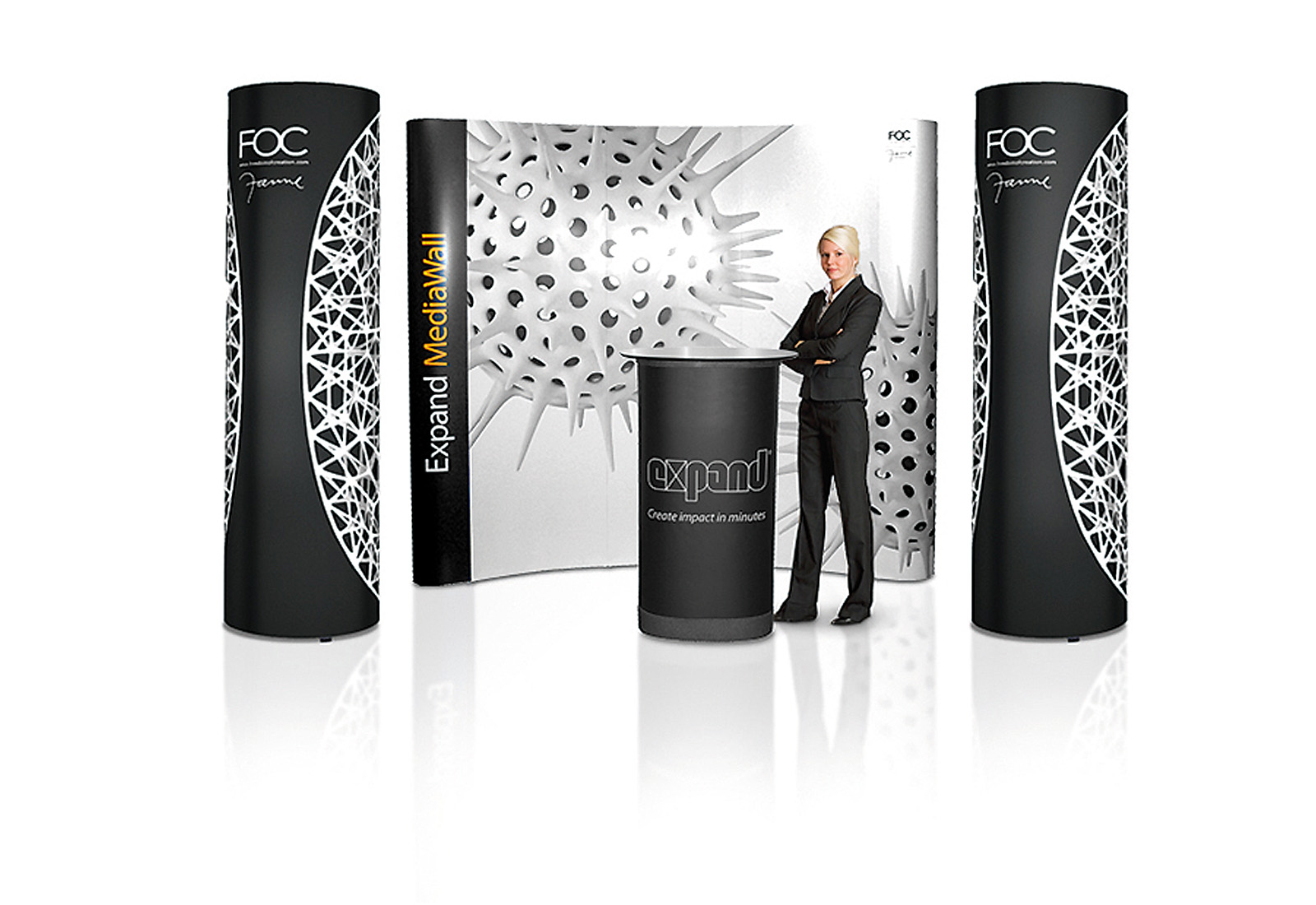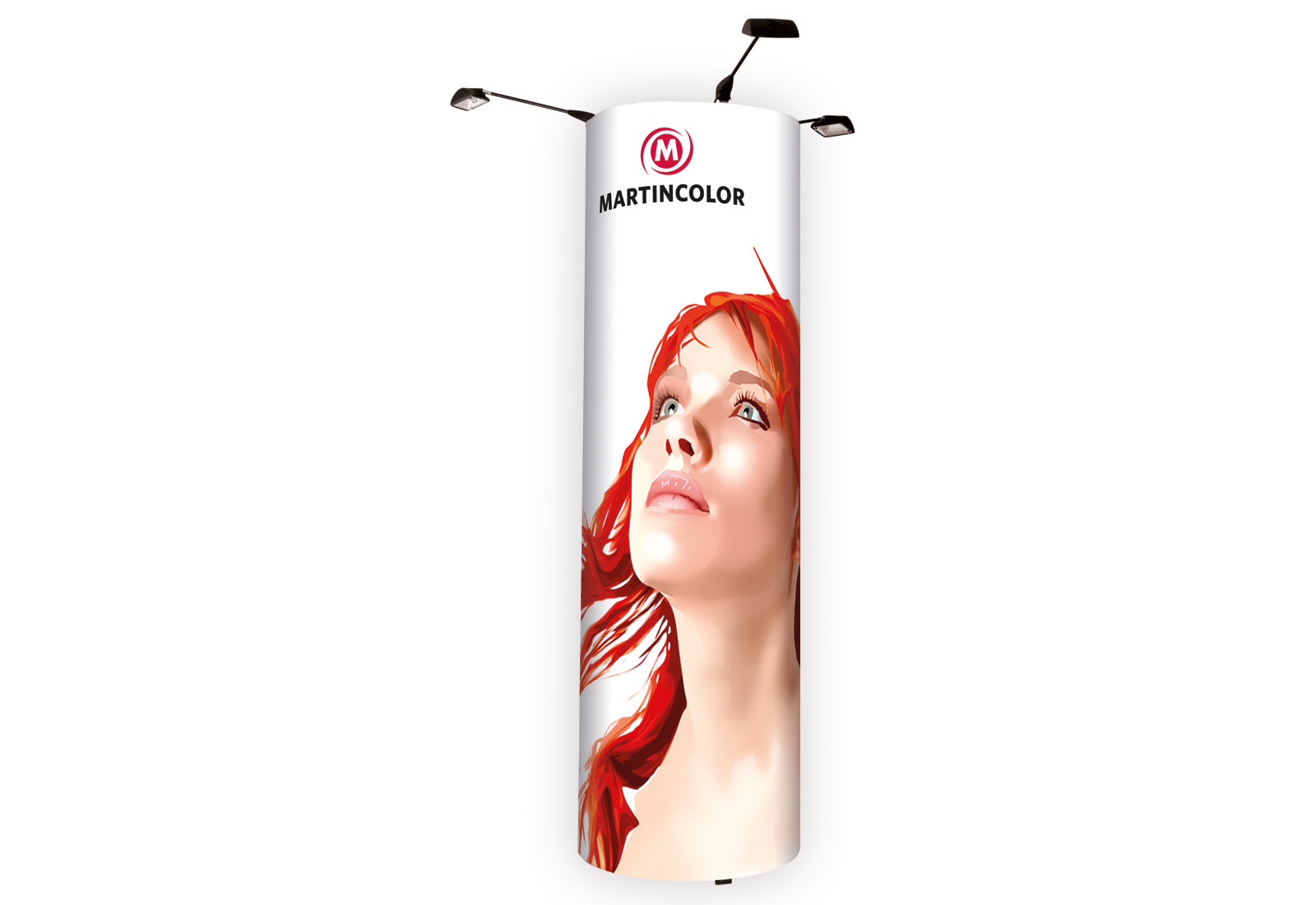 Der Expand Tower ist ein effektives Medium, um zusätzliche Aufmerksamkeit zu erzielen. Die Säulenform ermöglicht kreative Präsentationen auf kleinster Fläche und hilft Werbeaussagen optimal zu kommunizieren. Um den Aufmerksamkeitswert der Botschaft zu steigern, sind zusätzlich zwei Beleuchtungsvarianten, Downlights oder Backlit, erhältlich. Die Messesäule Expand Tower besteht aus einem PopUp Gestänge, das rundherum mit hochwertigen Grafikbahnen versehen wird. Damit ist die Säule in wenigen Minuten aufgebaut. Der Expand Tower hat einen Durchmesser von 66 cm bei einer Höhe bis zu 300 cm und wird in einer praktischen Nylontasche geliefert.