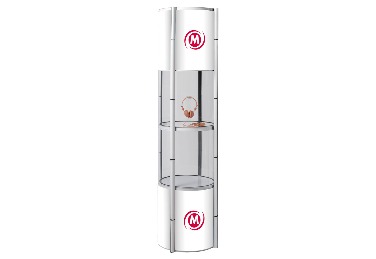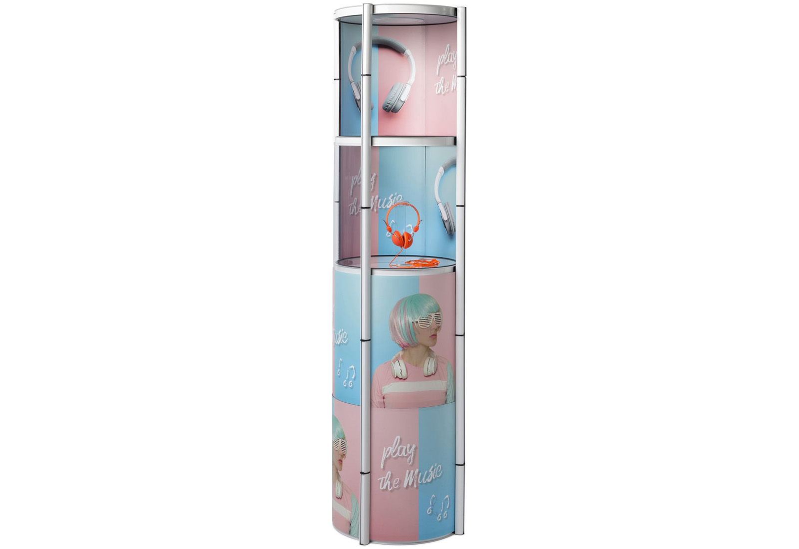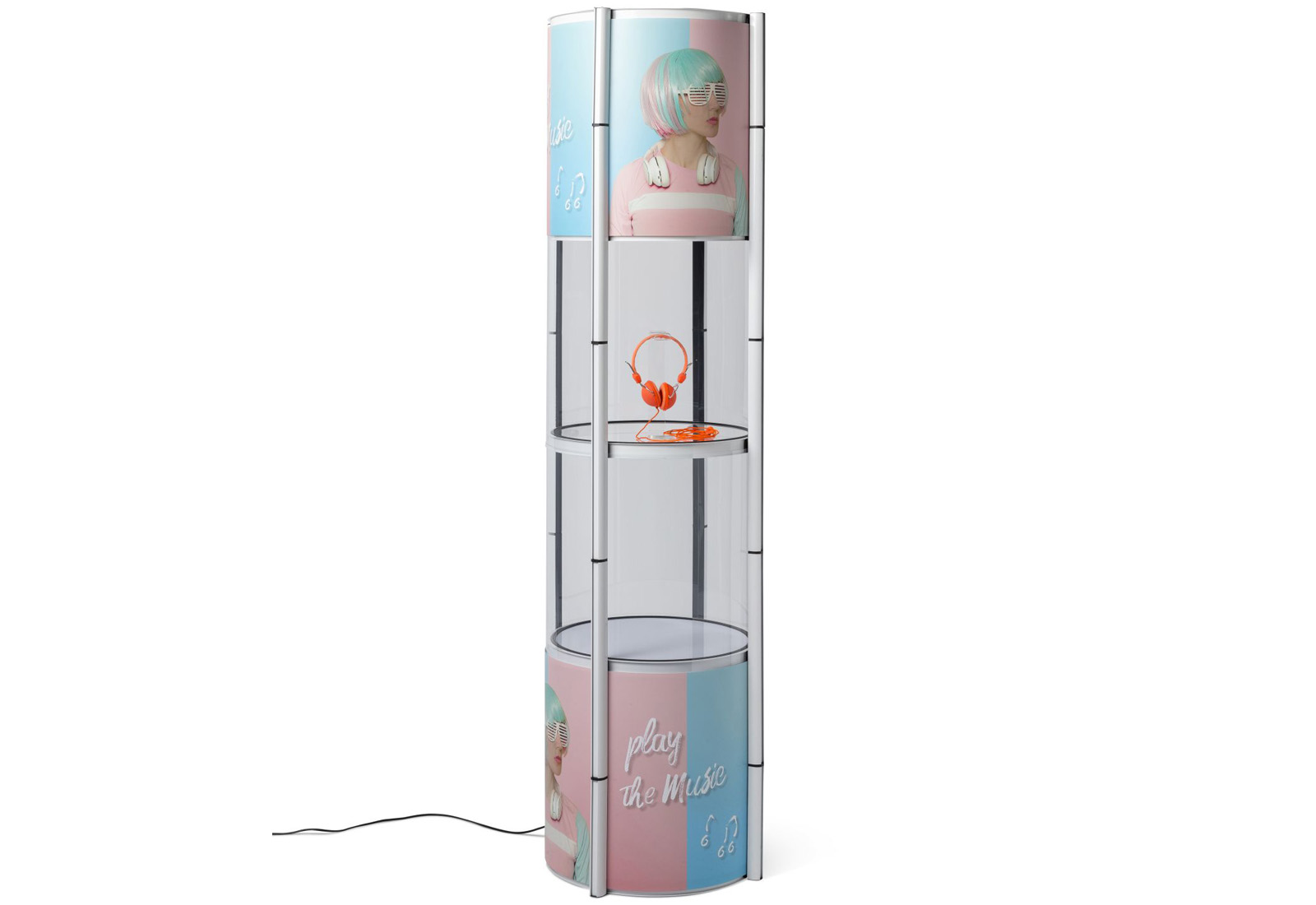 Eine der pfiffigsten Säulen in unserem Displaysortiment ist die Twiddle Säule, eine Abwandlung der beliebten Twist Säule. Twiddle ist eine außergewöhnliche Präsentationssäule, die sich mit einer einzigen Drehbewegung aufbauen lässt. Das System lässt sich komplett mit Grafik oder teilweise mit durchsichtigem Polyester (Vitrineneinsatz) bestücken. Anders als Twist, besteht die Twiddle Säule aus weiß-eloxierten Längsstreben.