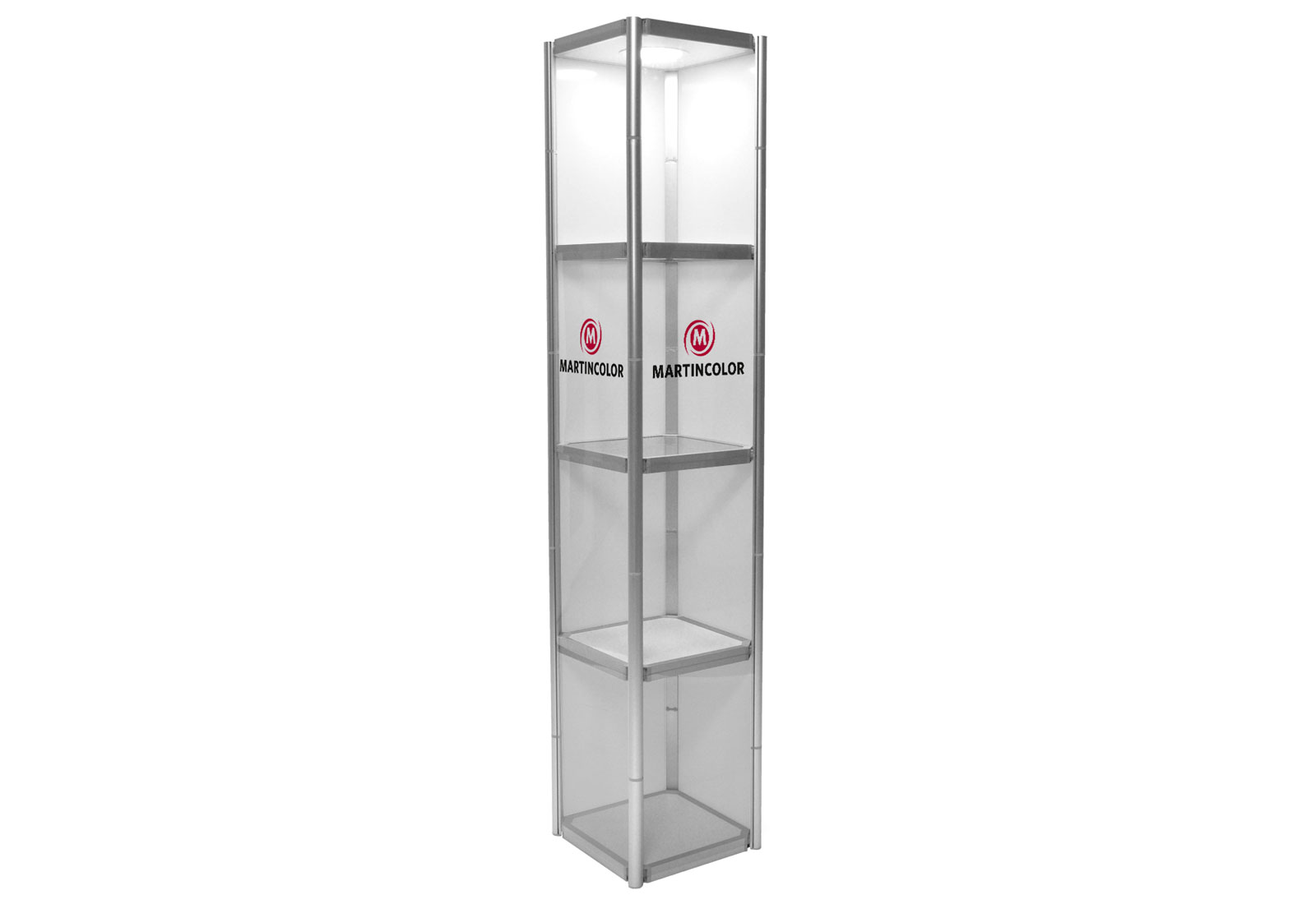 Ganz neu in unserem Werbesäulen-Programm ist die Twist Vitrinensäule Square. Sie ist ein Update unserer bereits bekannten Twist Vitrinensäule Basic. Anders als die runde Twist Säule Basic handelt es sich bei Square um ein viereckiges Model. Alle Werbesäulen aus der Twist-Familie sind mit einer einzigen Drehbewegung aufzubauen, sodass sie innerhalb weniger Minuten einsatzfertig sind. Da die Sichtfelder des System mit durchsichtigem Polyester bestückt sind, kann auch bei mehrfachen Einsätzen nichts kaputt gehen. In den meisten Fällen wird die Twist Säule als transportable Vitrine eingesetzt. Auf Wunsch kann jede Twist Säule ganz oder teilweise mit Grafik bestückt werden. Twist Square ist standardmäßig mit einem LED Strahler im Top ausgestattet. Twist Square besitzt einen Durchmesser von 50 cm und ist in 200 cm Höhe lieferbar. Jeder der zwei Zwischenböden kann mit 15 kg belastet werden.