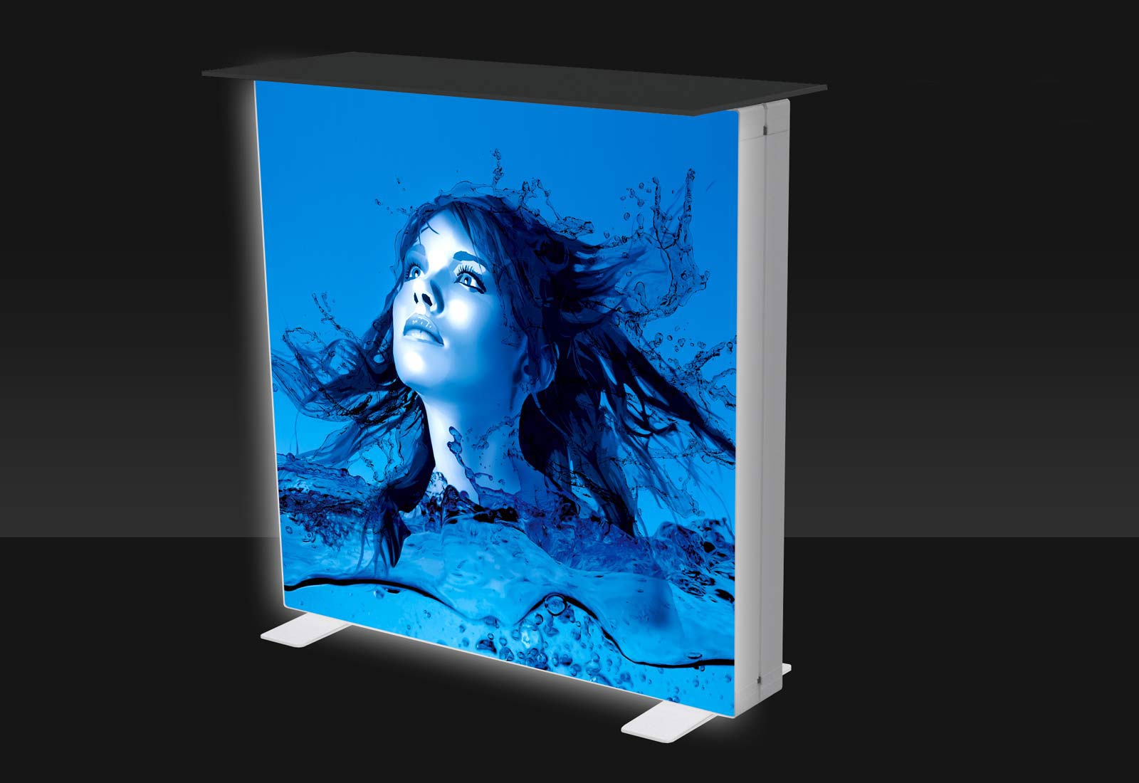 Die PIXLIP GO ist die erste mobile Leuchttheke aus Kunststoff. Das Grundsystem besteht aus weißen Kunststoffprofilen die werkzeugfrei ineinander gesteckt werden. Die PIXLIP GO Leuchttheke besitzt ein Format von 100 x 100 cm und ist mit einer schwarzen Thekenplatte mit 40 cm Tiefe ausgestattet. Das leichte ABS Kunststoff-Profil des Systems ist einfach in der Handhabung, strapazierfähig und, im Gegensatz von Aluminiumprofilen, ohne scharfe Kanten (verletzungsarm). Die im Profil integrierten, hocheffizienten Osram LED-Module garantieren eine homogene Ausleuchtung Ihrer Werbebotschaft. Die individuell bedruckten Textilien machen jedes PIXLIP GO Leuchtdisplay zu einem Unikat und, ändert sich Ihre Werbebotschaft, lassen sich die textilen Drucke sekundenschnell und problemlos auswechseln. Durch die Leichtbauweise aus Kunststoff ist PIXLIP GO nicht nur einfach aufgebaut, sondern auch extrem leicht zu transportieren. Ob im praktischen Versandkarton oder in der komfortablen Tragetasche: PIXLIP GO passt in jeden Kofferraum. Passend zur PIXLIP GO Theke gibt es auch die PIXLIP GO Leuchtstehle.