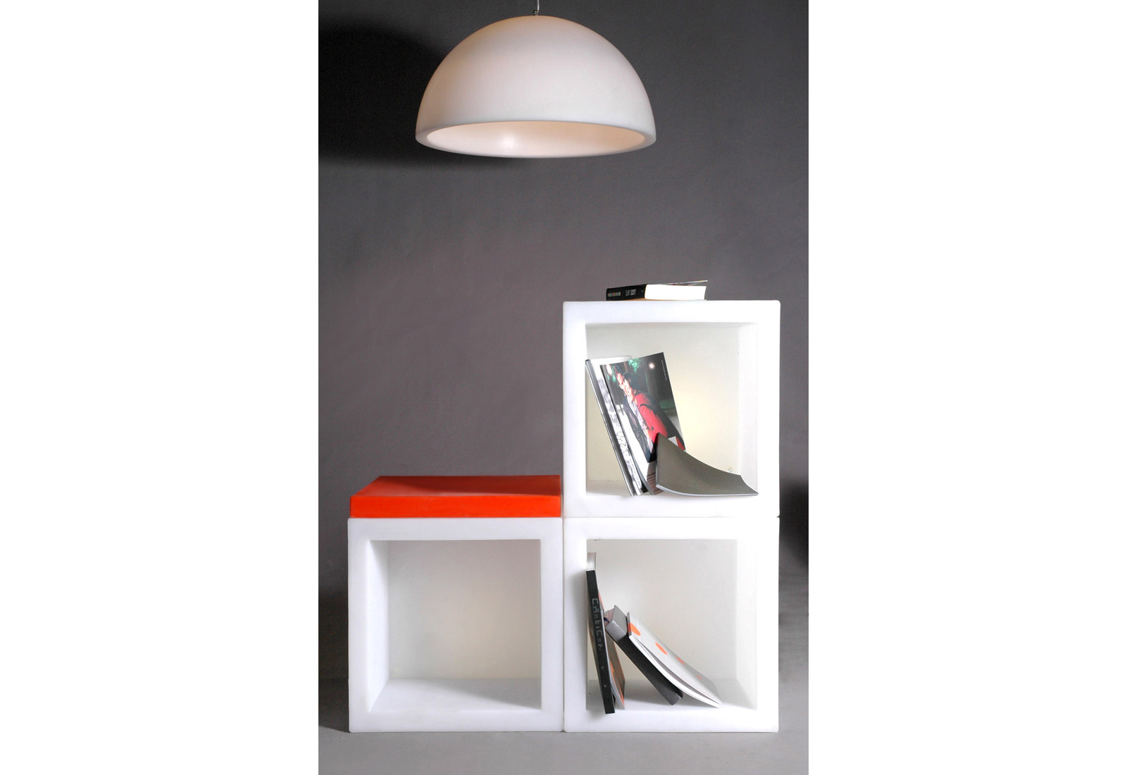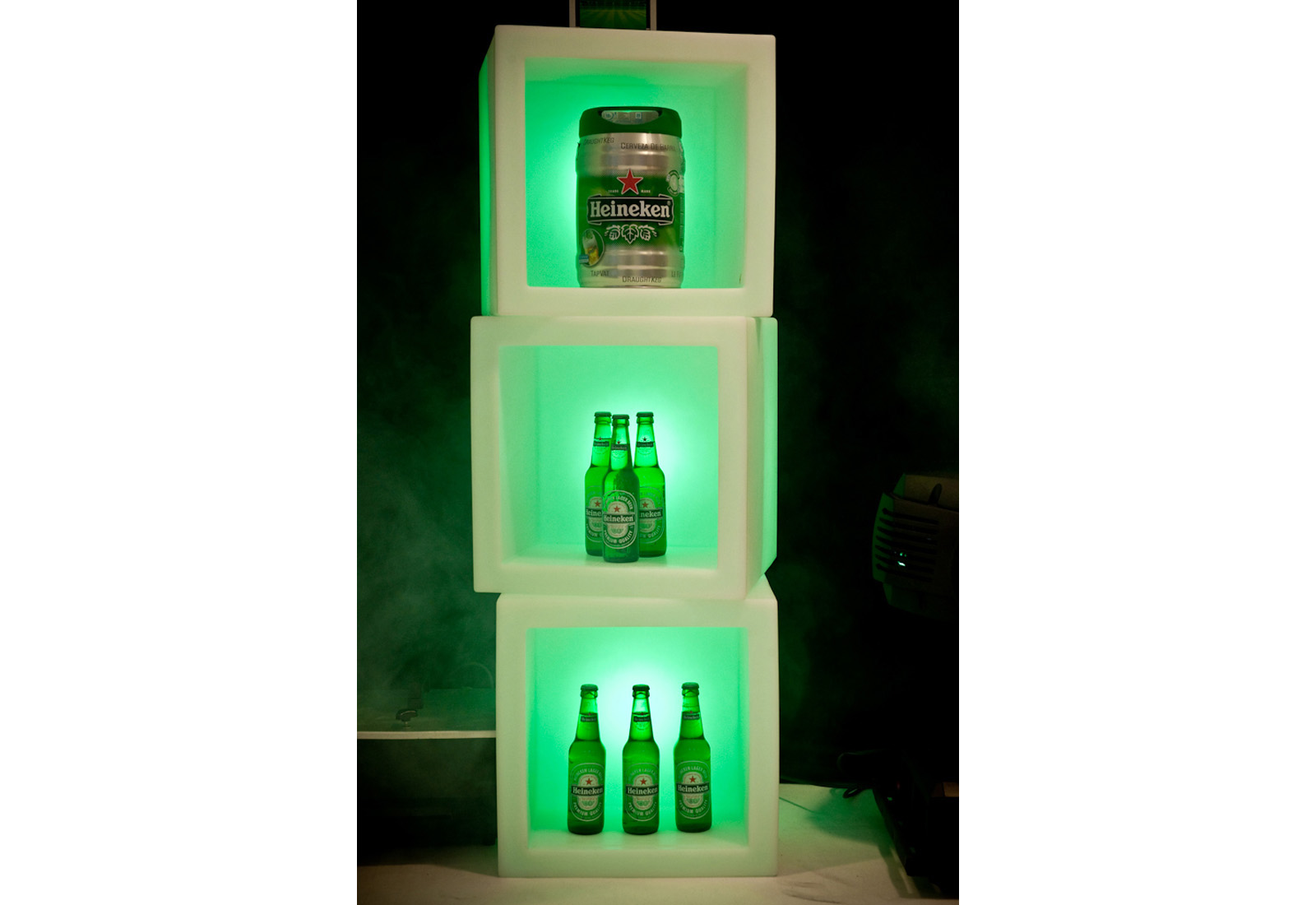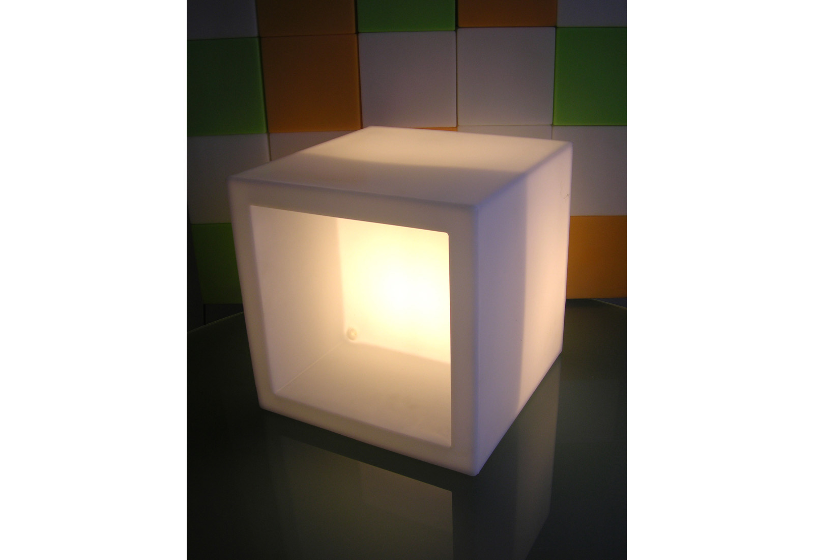Der OPEN CUBE ist ein Leuchtwürfel mit einer offenen Seite. Damit können Sie Ihre Lieblingsstücke gekonnt in Szene setzen und beleuchten. Mehrere OPEN CUBEs lassen sich als Regalwürfel zu einem leuchtenden Regal oder offenen Sideboard stapeln. Da jeder OPEN CUBE getrennt ein- und ausgeschaltet wird, bestimmen Sie die Helligkeit und das Aussehen Ihrer Installation.Perfekt ist der OPEN CUBE auch für Empfangshallen oder Messen. Auch bestückt mit Zeitschriften sieht der Leuchtwürfel sensationell aus. Sie können den Würfel auch mit der offenen Seite nach oben als Ablage oder als Bar benutzen. Der große OPEN CUBE (73 cm Kantenlänge) kann mit einer Glasplatte kombiniert zu einem außergewöhnlichen Esstisch oder Konferenztisch gemacht werden. Gefertigt wird der OPEN CUBE Leuchtwürfel aus robustem Polyethylen.