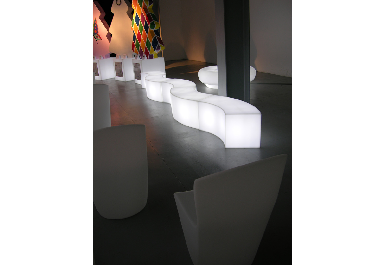 SNAKE ist ein beleuchtetes Sitzelement oder eine Präsentationsfläche, das sich durch Räume oder Plätze schlängelt. Ob Sie einen Kreis (mit 6 SNAKEs) für ein kurzes Meeting bilden möchten oder einen Wurm, der sich in jede gewünschte Richtung schlängelt, je nach aktuellem Anlass können Sie immer wieder neu entscheiden. Bei dem Einsatz als Sitzelement sind verschiedene Polsterauflagen als Zubehör lieferbar. Hervorragend zu kombinieren ist SNAKE mit allen anderen Systemen aus unserer Leuchtmöbel-Serie. Gefertigt wird das SNAKE Sitzelement aus robusten, witterungsbeständigen Polyethylen und ist somit für den Außen- als auch für den Inneneinsatz verwendbar.
